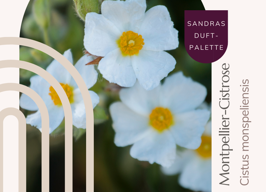 Zuhause aber, ja da ist die Montpellier-Cistrose eines meiner Stars. Als Cistrosen-Verliebte war es mir eine große Freude 2021 bei der Aromareise auf Pantelleria nach der Lack-Cistrose ganz innige Bekanntschaft mit der kleinblütigeren weißen Montpellier-Cistrose und der magentafarbenen Kretischen Cistrose zu machen. Die „Kleine Weiße“ erblüht allmorgendlich in einer neuen Üppigkeit und wagt sich als einzige weit auf Felsenvorsprünge, in den Wind und ans raue Meer vor. Eine Kriegerin für das Sanfte, Widerstandsfähige. Durchdrungen von Neptun-Energie und Pluto-Wirken.
